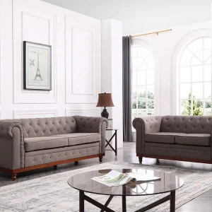 Canapé 2 Places Vintage Gris Salon Chesterfield