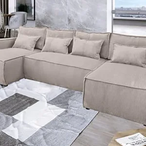 Salon d’Angle Convertible Panoramique Côtelé Épais De Coloris Beige