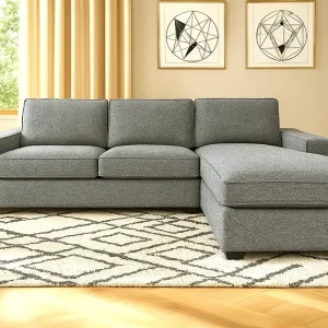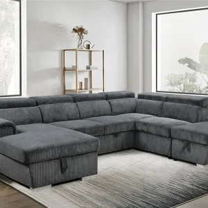 Salon d’Angle Convertible Panoramique Épais Côtelé Gris