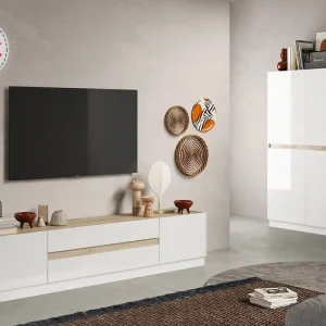 Meuble TV 2 Tiroirs 1 Porte Bianca