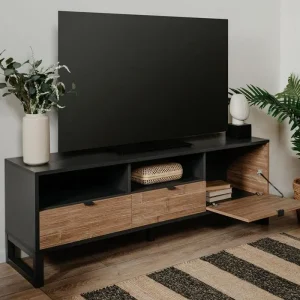 Meuble TV 2 Tiroirs 2 Niches (Collection Industrielle Indy)