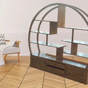 Étagère Demi Ronde Teck 2 Portes 2 Tiroirs