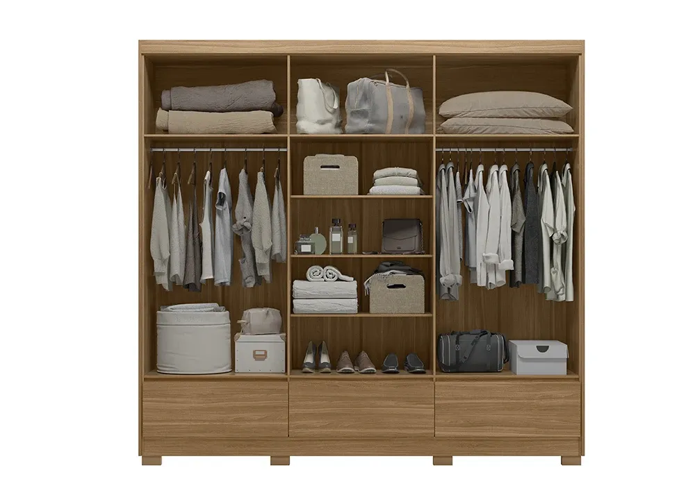 L’armoire Himalaya sublimera votre chambre avec son style unique. Composée de 6 portes et 3 tiroirs, cette garde robe sera parfaite et apportera clarté et luminosité à votre chambre avec ses coloris naturel. L’intérieur est muni de nombreux espaces de rangement permettant une organisation efficace.