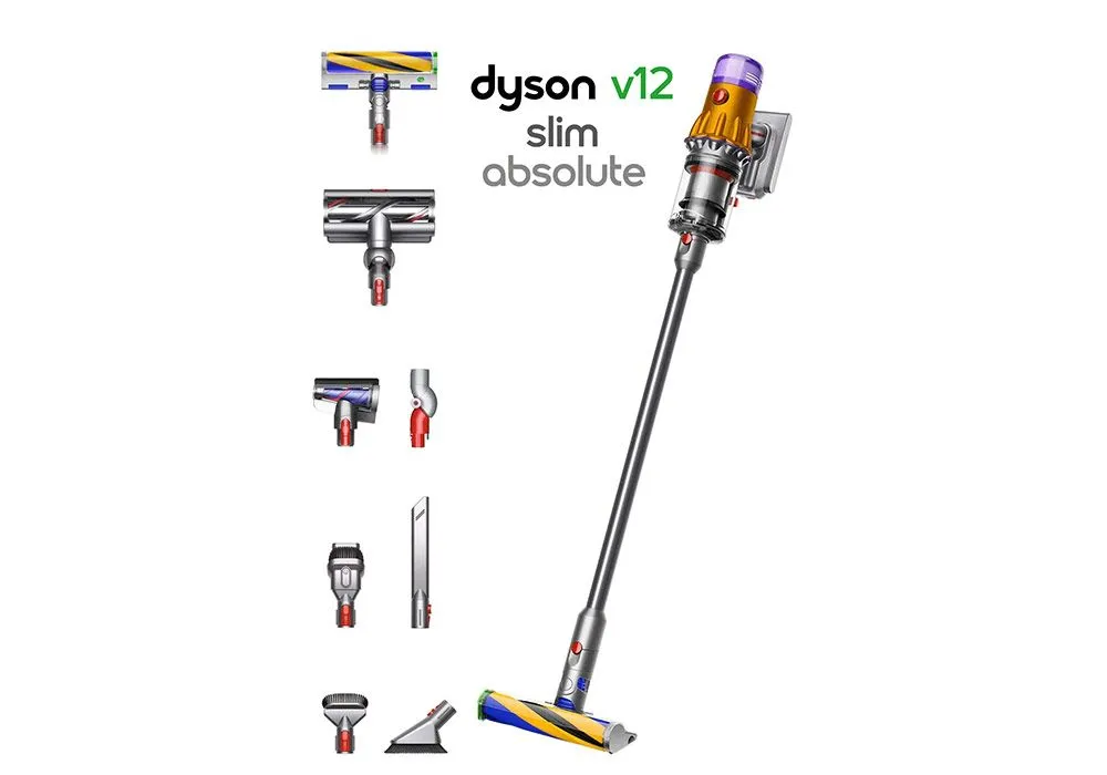 L’aspirateur Dyson V12 Slim Absolute est idéal pour le nettoyage en profondeur du sol au plafond grâce à ses différentes brosses!