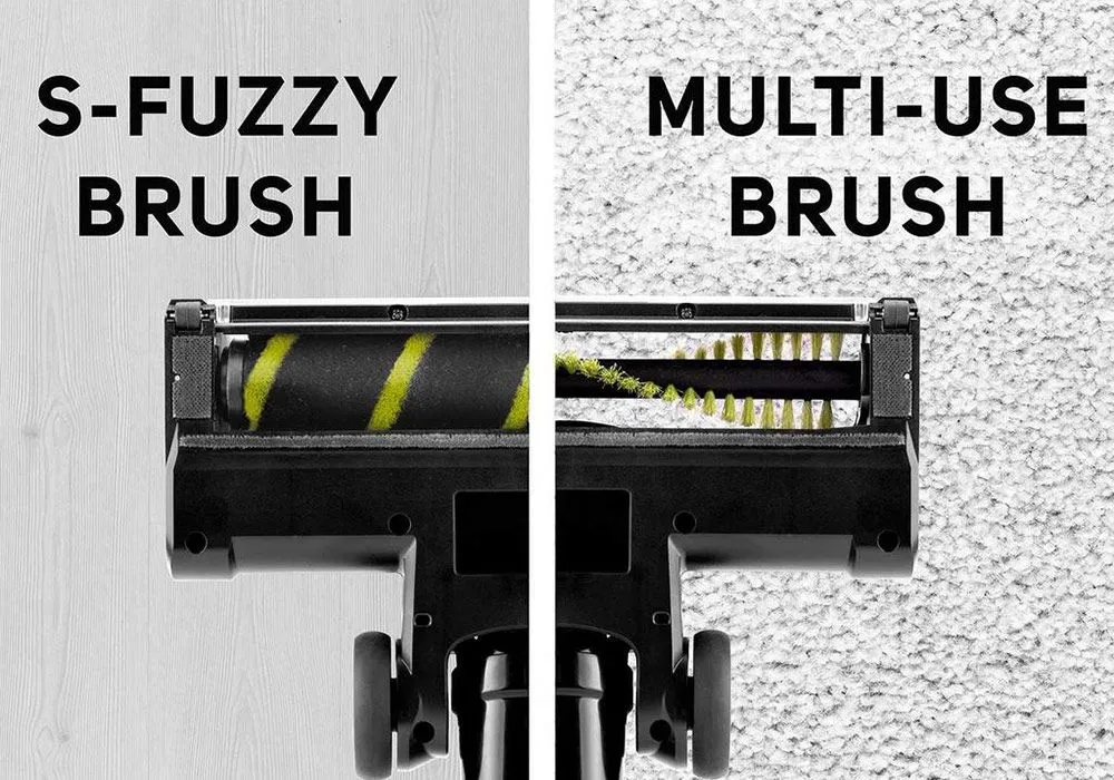 Il dispose d’une seule brosse pour tous les types de sols, carrelages, parquets, moquettes et tapis. Il comprend un éclairage Optic Led sur la brosse pour une visibilité optimale sous les meubles et dans les zones sombres.