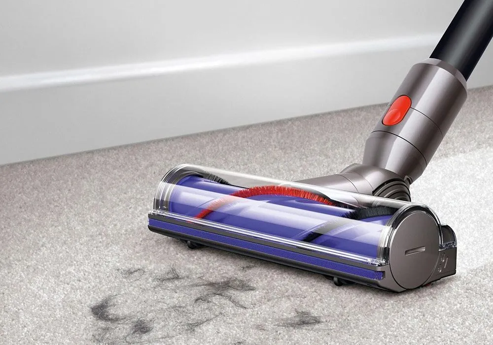 Brosse Motorbar : Les poils rigides en nylon gainés pénètrent et décollent efficacement la poussière des moquettes et les poils en fibre de carbone pour retirer la poussière fine des sols durs. 75% plus puissante que la brosse motorisée du V6 Cordfree.
