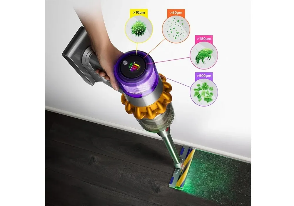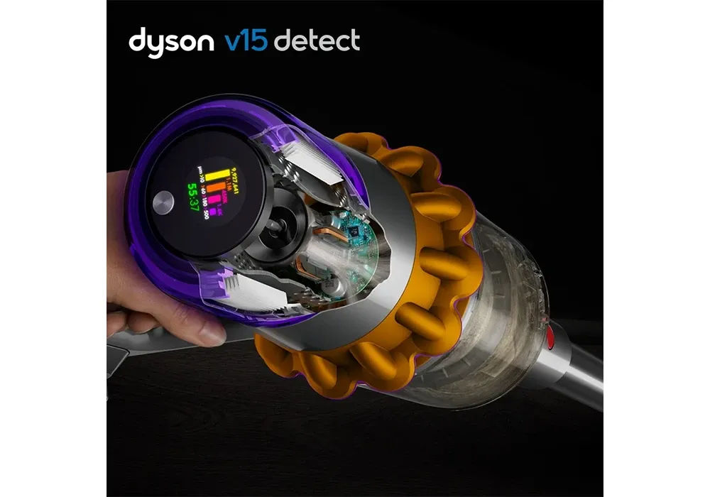 L’aspirateur balai DYSON V15 FLUFFY offre une aspiration puissante, capture les allergènes et assure un nettoyage en profondeur, idéal pour les foyers avec animaux. Il révèle également la poussière microscopique !