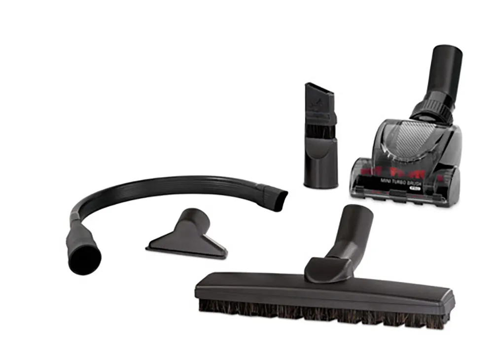 Équipé d’une brosse pour parquet, d’une mini turbo brosse et de plusieurs suceurs, dont un pour l’ameublement, il traite toutes les surfaces.