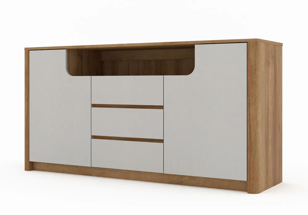 Vous cherchez un rangement au look moderne pour rehausser votre décoration ? Le bahut bas 2 portes 3 tiroirs Maria est le meuble qu’il vous faut ! Le buffet Maria trouve sa place dans toutes les pièces.