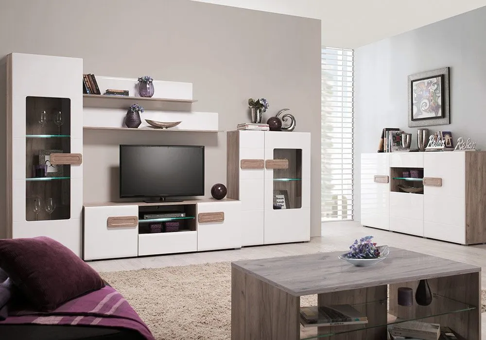 Structure en panneau de particules recouvert de papier coloris blanc brillant / chêne, 180x42x97cm.