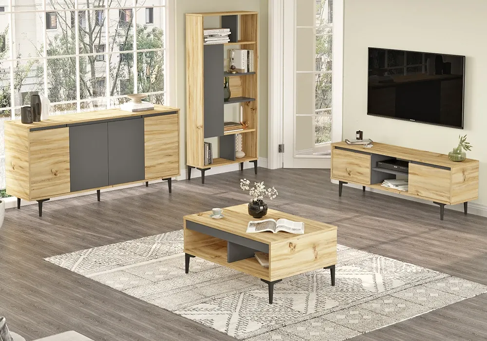 Réchauffez votre déco d’intérieur avec les meubles de la collection Candis. Le mélange de couleur chêne et anthracite créé un look industriel et design dans votre salon. Installé dans votre séjour, ils génèrent une ambiance chaude et conviviale.