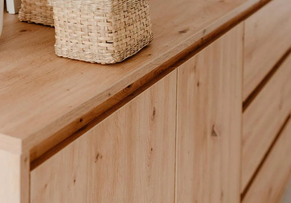 Ce somptueux buffet bas de la collection Korsika embellira votre séjour et ajoutera une touche design à votre intérieur. Son aspect épuré lui permet de trouver sa place dans diverses pièces de votre intérieur. Trouvez la place idéal dans votre salon et complétez votre décoration à l’ambiance moderne et naturelle.