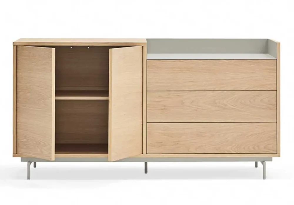 Le buffet bas Valley 2 portes 3 tiroirs se distingue par son design moderne et élégant qui s’intègre parfaitement à tout type d’intérieur. Ses lignes épurées et sa finition soignée ajoutent une touche de sophistication à votre espace de vie.