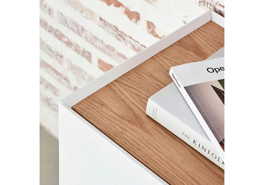 Découvrez la finesse de l’alliance du plateau en contreplaqué chêne naturel et du MDF laqué à la finition matte, qui donnera du cachet à votre intérieur.