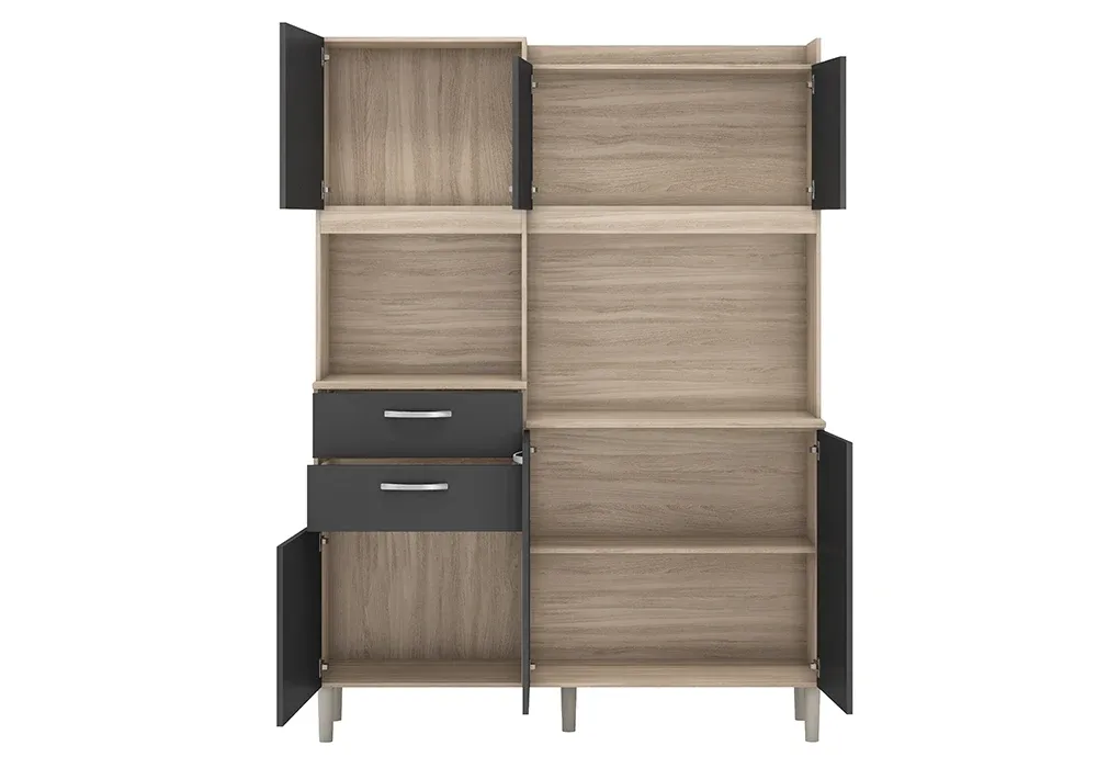 Doté de 6 portes et 2 tiroirs, ce meuble offre un vaste espace pour organiser vaisselle, ustensiles et provisions avec simplicité et efficacité. Sa structure en panneau de particules et MDF garantit robustesse et durabilité, assurant une tenue impeccable au fil du temps. Grâce à son agencement astucieux et son esthétique raffinée, ce buffet devient un véritable allié pour une cuisine ordonnée et élégante.