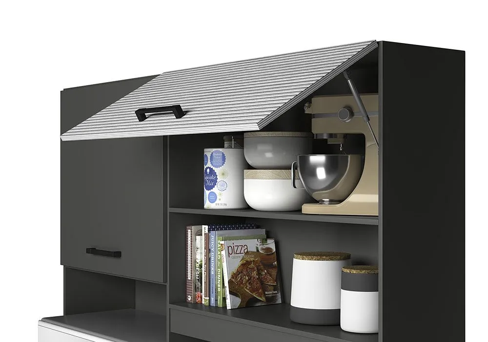 Structure en panneau de particules recouvert de papier coloris gris / gris clair, 140x43xH190cm.