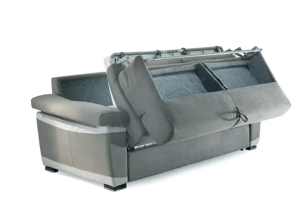 Le canapé convertible ressemble à un canapé classique mais cache astucieusement un mécanisme d’ouverture permettant de transformer le canapé en véritable à lit de 140x190cm. Une seule main suffit pour renverser le dossier.