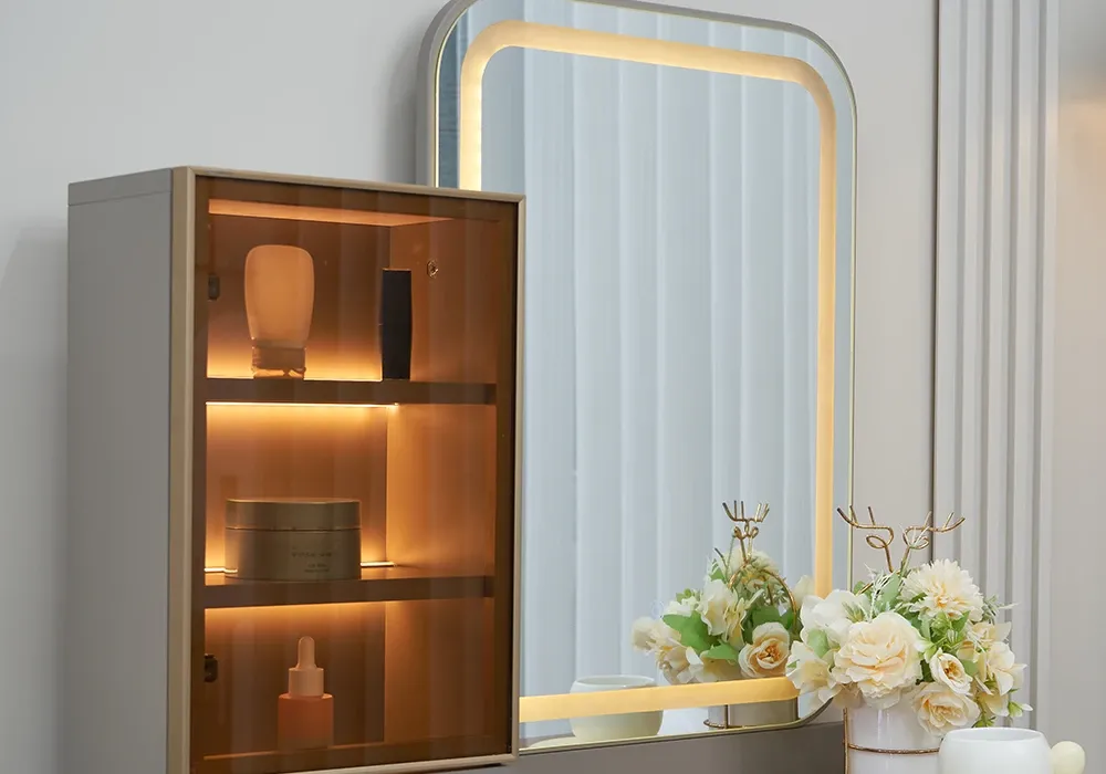 Le miroir éclairé par LED de la coiffeuse est d’une haute définition, idéal pour vérifier votre maquillage et votre coiffure. Vous pouvez choisir parmi trois modes d’éclairage.