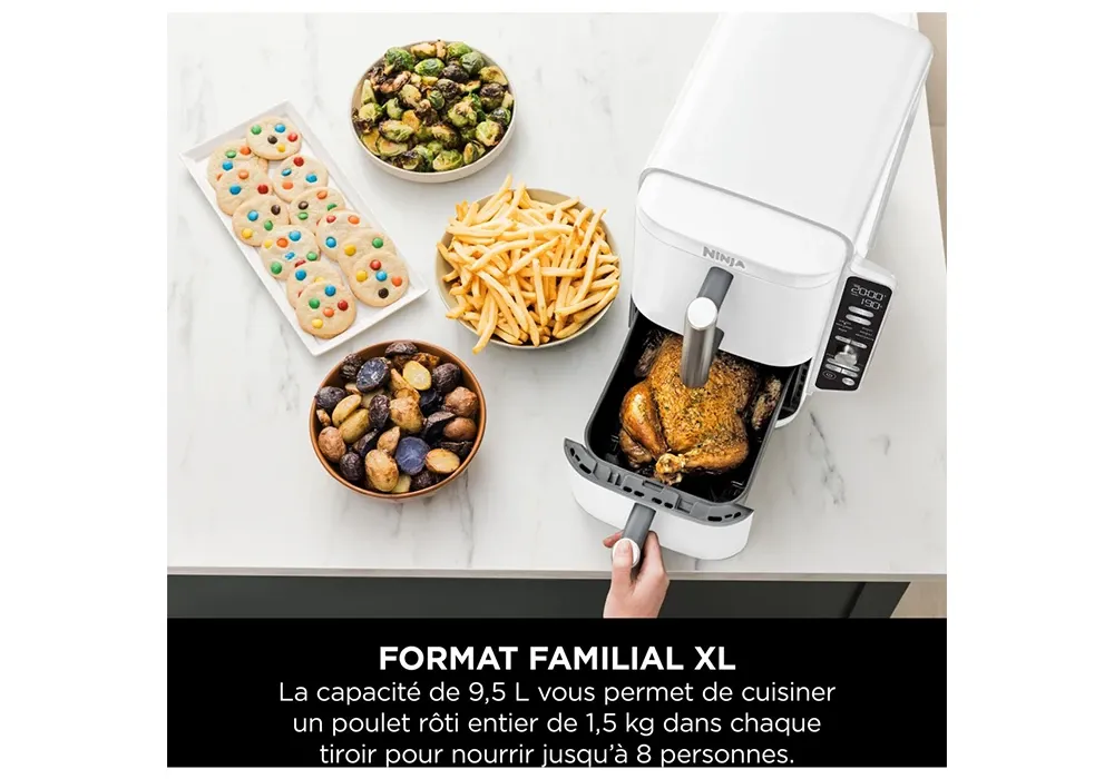 Friteuse à double capacité : Vous souhaitez une friteuse sans huile à double tiroir, mais manquez d’espace dans votre cuisine ? Découvrez la Ninja Double Stack XL, idéale pour les petites cuisines grâce à sa forme verticale.