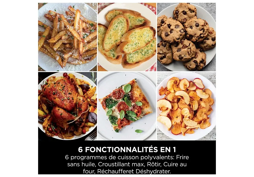Économie d’énergie : Utilise moins d’énergie qu’un four, ce qui en fait une option écoénergétique pour cuisiner plus rapidement et plus sainement.