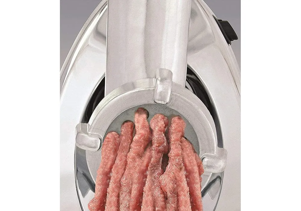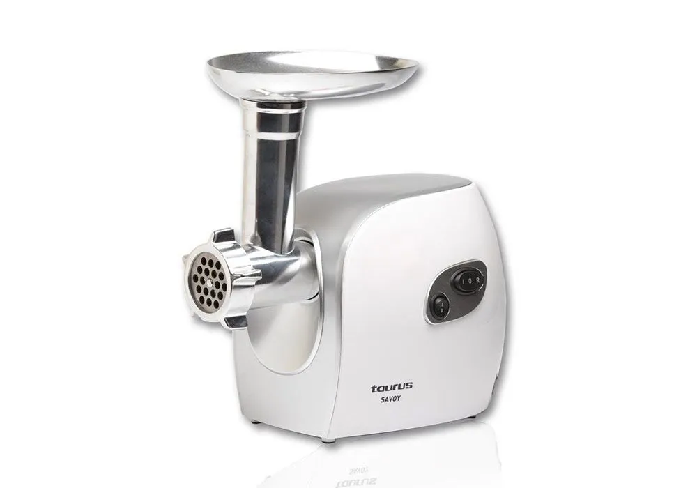 Hachez la viande instantanément avec Savoy de Taurus et choisissez parmi 3 tailles de coupe différentes. Sa puissance élevée de 450W assure des performances parfaites et rapides. Créez vos propres saucisses, hamburgers, boulettes de viande, brochettes, kebbés, etc., de manière très simple et confortable.