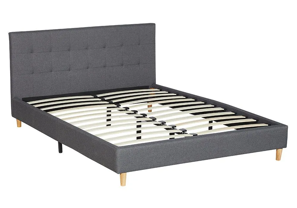 Structure en BOIS MASSIF et panneau de particules, revêtement en tissus coloris gris. LIT VENDU AVEC SOMMIER SANS MATELAS