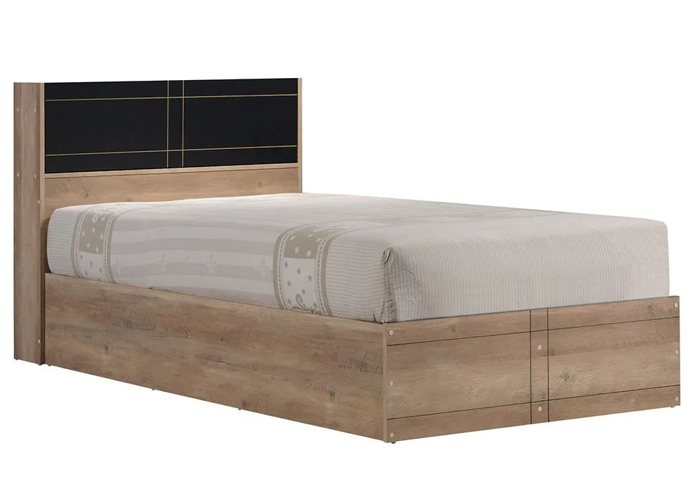 Ce lit de haute qualité de la collection Alexandra deviendra la star de votre chambre à coucher, ses lignes épurées, sublimées par une teinte summer oak/noir, en font un lit de avec un aspect et un design élégants mais discrets, ce lit donnera à votre chambre une touche de charme sophistiquée.