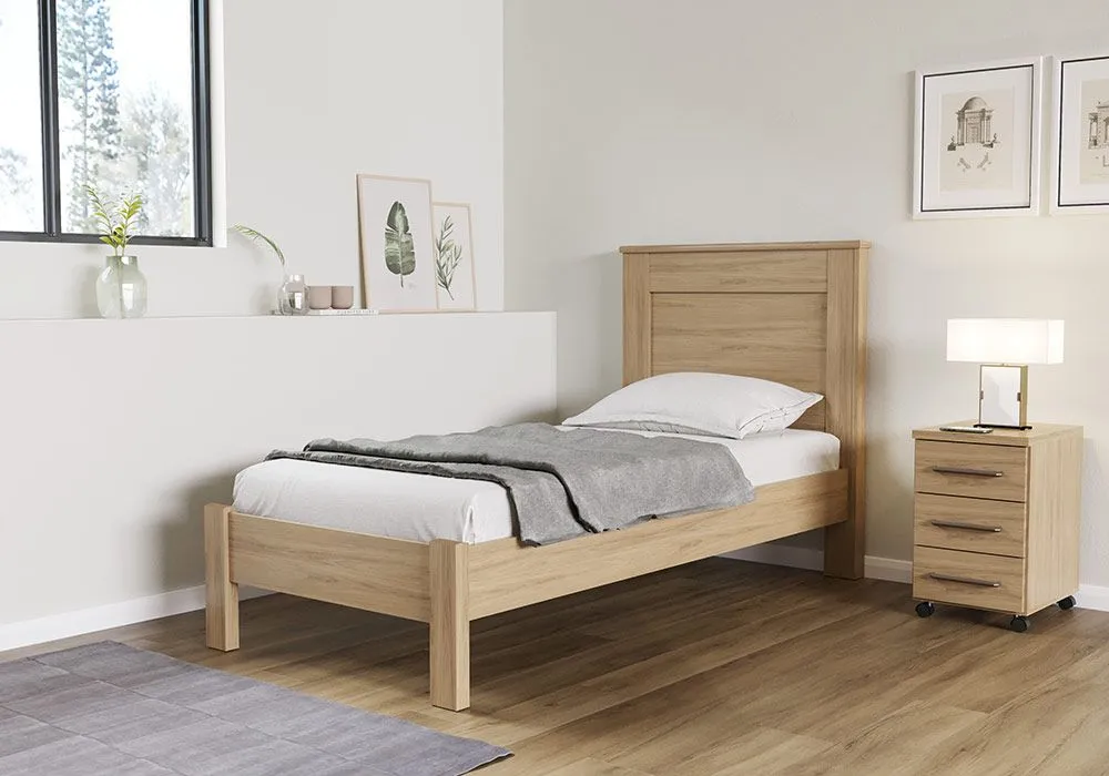 Structure en panneau de particules grosse épaisseur recouvert de papier coloris hêtre. Lit vendu AVEC SOMMIER SANS MATELAS