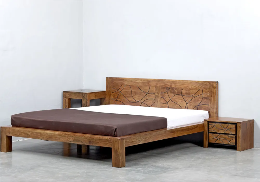 En BOIS DE MANGUIER MASSIF, vendu AVEC SOMMIER, SANS MATELAS.