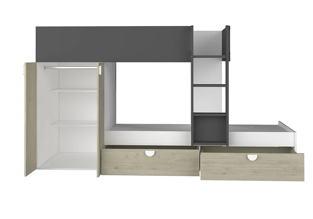 - Détails pratiques : Étagère supérieure et renfoncement servant de table de chevet pour le lit inférieur, offrant des solutions de rangement supplémentaires.