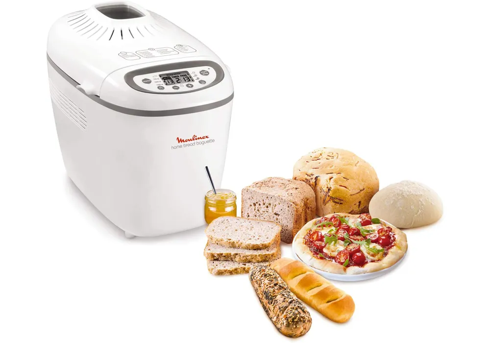 Faites plaisir à toute votre famille avec du pain frais et de délicieuses baguettes avec la machine à Pain Moulinex Home Bread Baguette. Ses 16 programmes comprennent baguette, baguette sucrée, pain de base, pain français, pain complet, pain sucré, pain rapide, pain sans gluten, pain sans sel, pain oméga 3, cuisson du pain, de la pâte, des gâteaux, de la confiture, des pâtes.