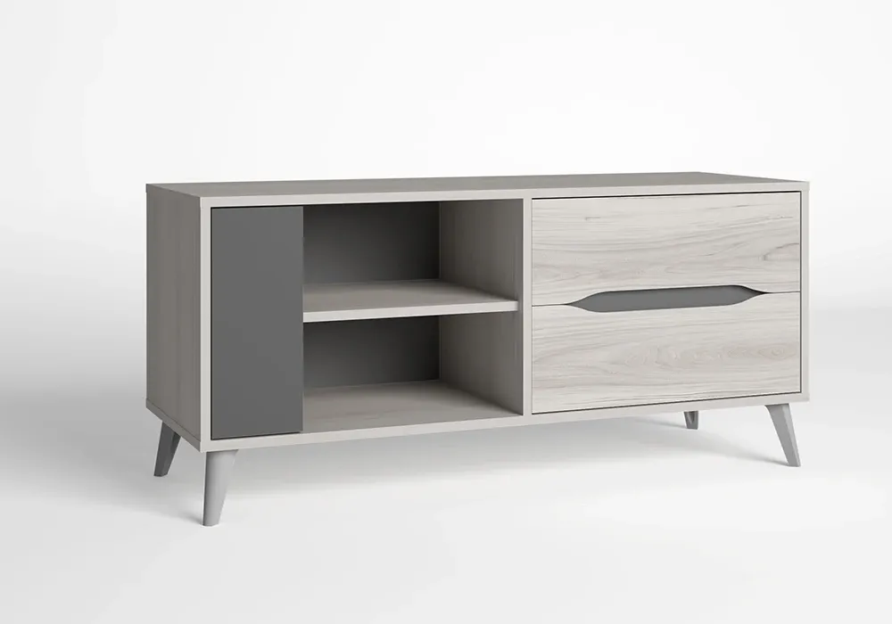 Ce meuble de télévision design offrira à votre salon une déco fraiche et scandinave. Ce meuble TV 1 porte et 2 tiroirs offre un aménagement pratique pour le matériel hi-fi et les divers accessoires de décoration.