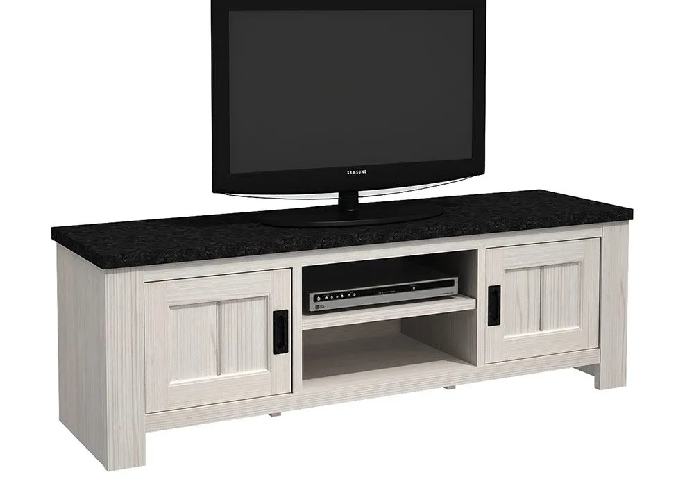 Le meuble TV de la collection Michigan se compose tant bien avec style moderne, industriel ou minimaliste. Il possède 2 portes et 2 niches pratiquent pour ranger les magazines ou matériel hifi.