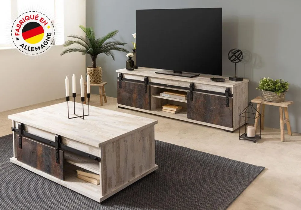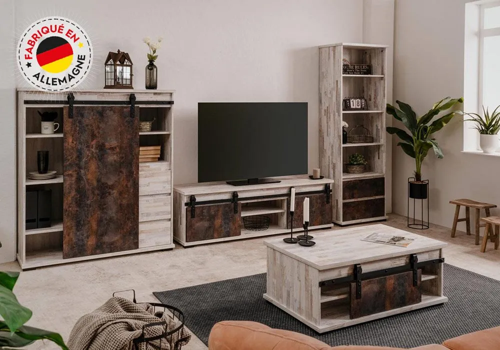 Avec un style industriel et épurée, ce meuble TV de la collection Sevilla s’intégrera très facilement dans votre pièce à vivre. Ce mobilier pourra être installée aussi bien dans une pièce moderne que dans une décoration plus classique.