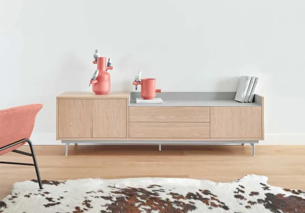 Avec son design élégant et intemporel mêlant le bois au métal coloré, la collection Valley propose des meubles de rangement design adaptés aux intérieurs contemporains.