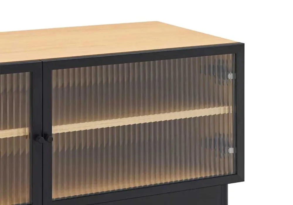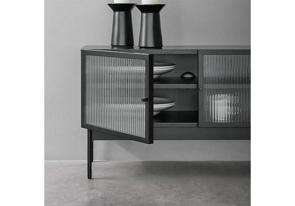 Avec les reflets brumeux de son verre strié, la collection Blur dématérialise les silhouettes en jouant avec l’invisible et le quasi perceptible. Du mariage du verre, du métal et du bois teinté noir ressort une élégance propre à cette collection.