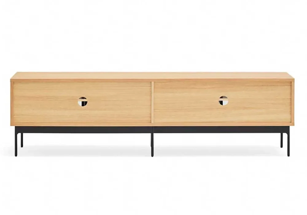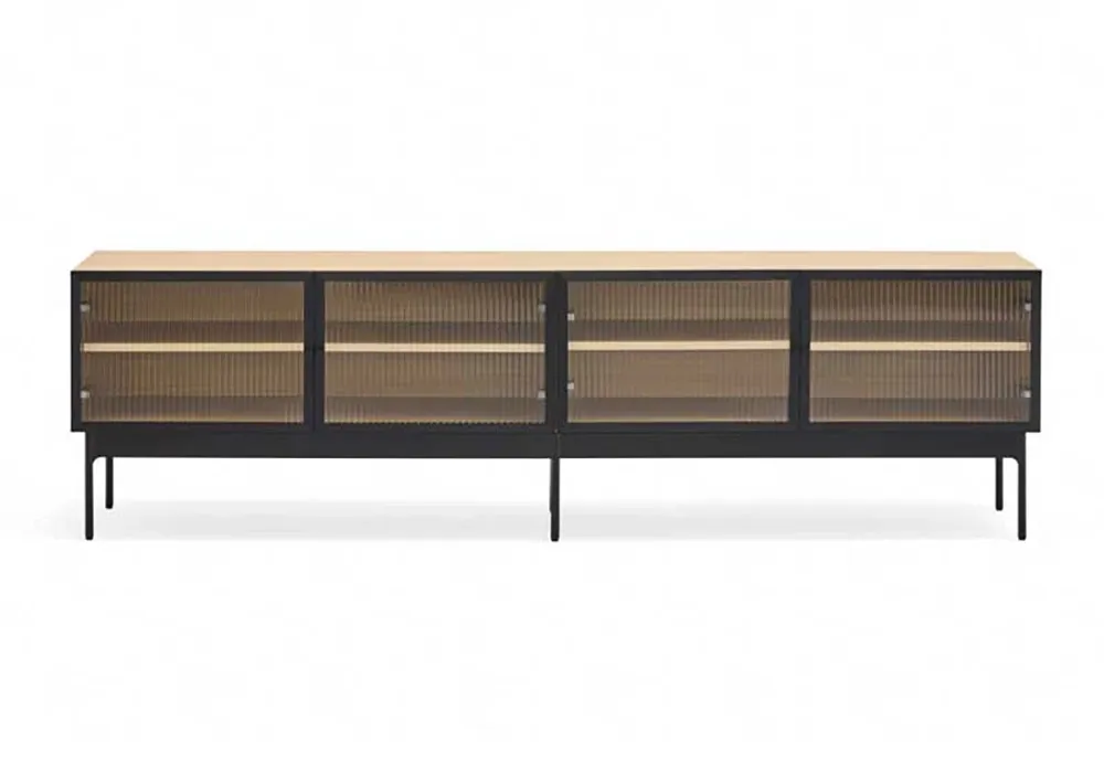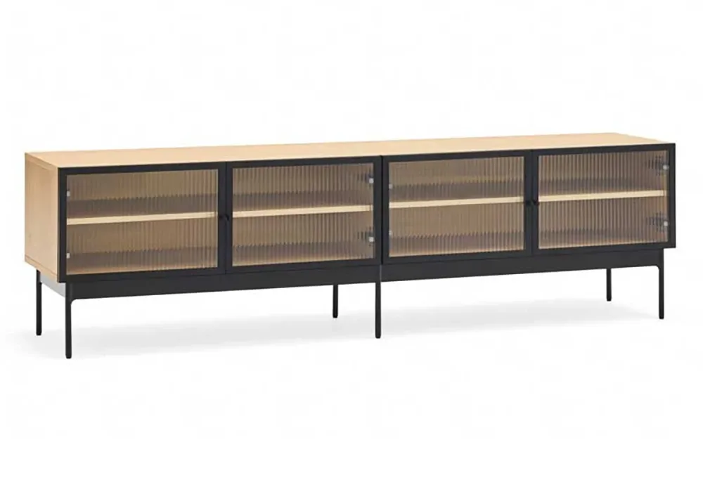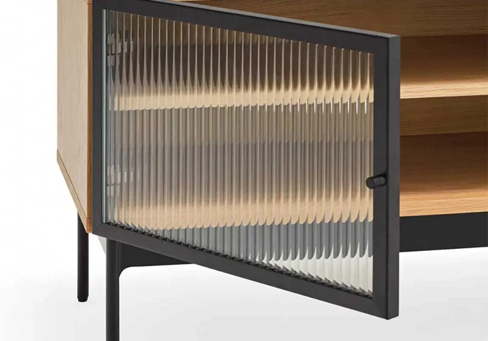 On devine en transparence les objets qui y sont rangés. Les lignes simples et géométriques du meuble TV Blur mettent idéalement en valeur l’aspect texturé qui fait l’originalité de cette création.