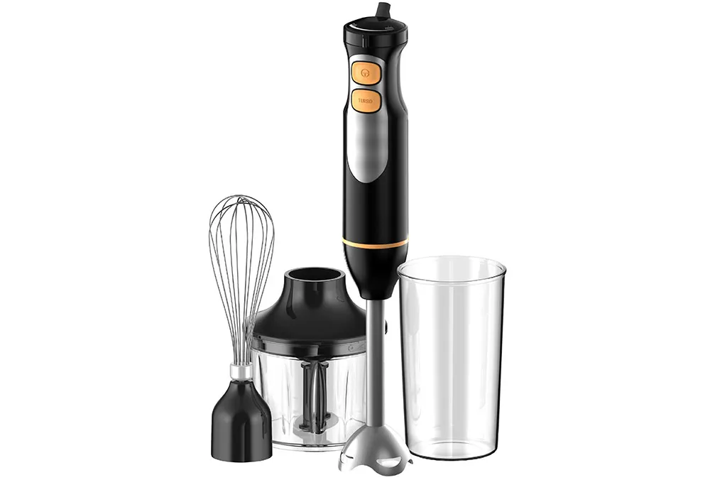 Un mixeur plongeant qui vous aide dans toutes vos préparations culinaires ? C’est possible avec le robot plongeant 4 en 1. Avec ce mixeur vous pouvez facilement réussir à la perfection toutes vos purées maison, hacher finement toutes vos herbes grâce au hachoir, monter vos blancs d’œufs en neige avec le fouet, réaliser d’onctueuses soupes ou encore préparer vos repas pour bébé à l’aide du pied mixeur !