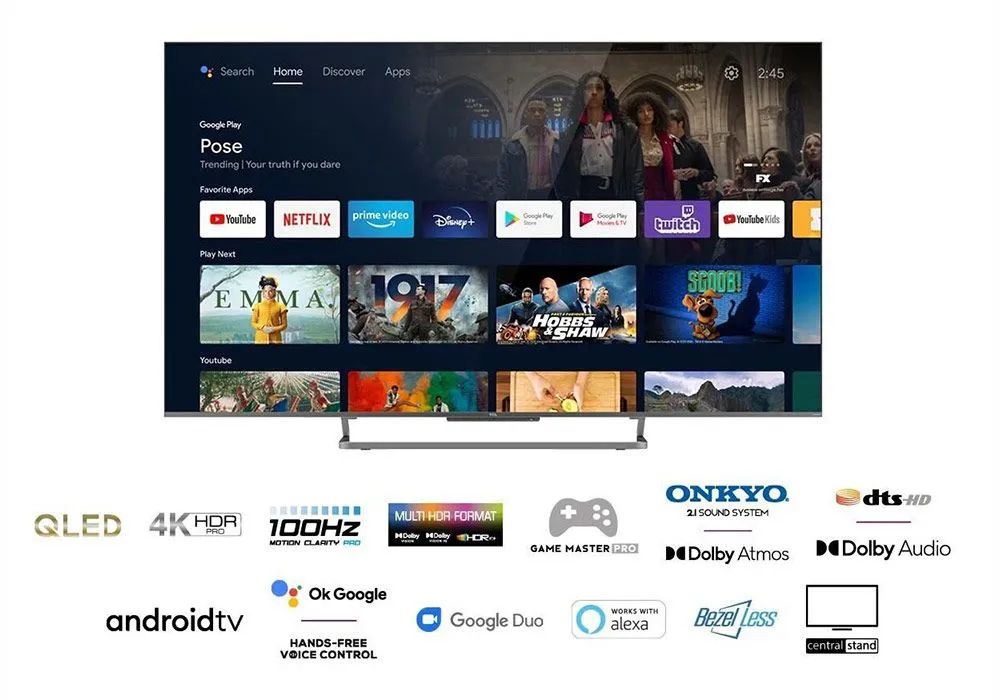 Le téléviseur 55C728 est Android compatible avec Google Home et Google Assistant. Il comporte donc toutes sortes d’applications (Netflix, Prime Video, Disney +, MyCanal, OCS, etc.). Compatible aussi avec Alexa d’Amazon qui fonctionne avec le cloud et devient plus intelligente chaque jour. Gardez le contrôle avec les commandes vocales mains libres d’Android TV.