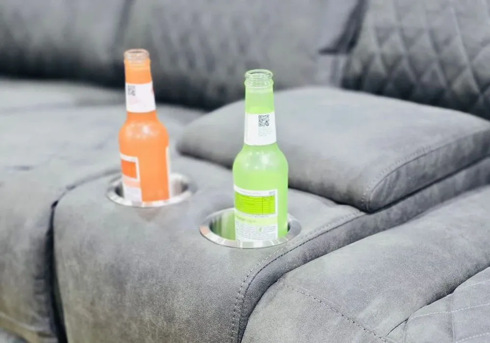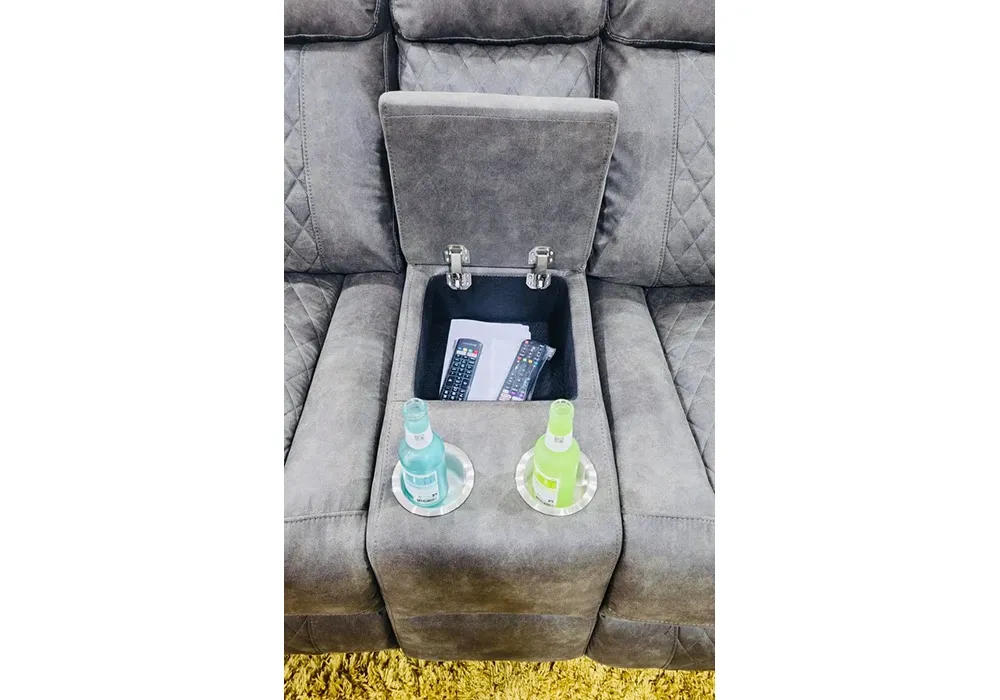 Le revêtement en mousse polyuréthane et tissu microfibre de catégorie A coloris gris titanium offre un confort exceptionnel et une douceur inégalée. Profitez de ses 2 relax électriques multi positions dotés de LED pour un maximum de relaxation. Les 2 consoles gobelets avec LED et le coffre de rangement ajoutent à la praticité de ce meuble haut de gamme.