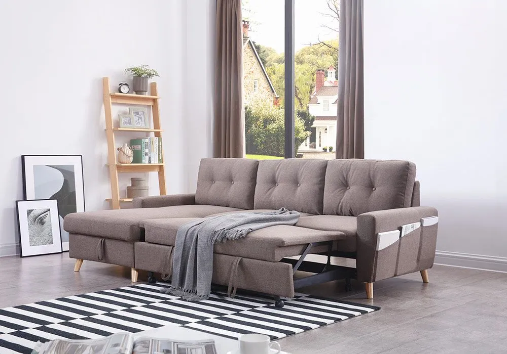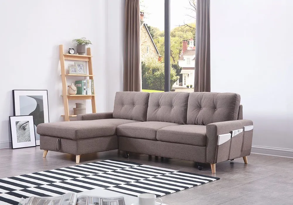 Le style scandinave du canapé convertible Larsoon s’agence aussi bien dans un intérieur lumineux que dans un séjour plus sombre. Son tissu marron habille la structure de ce modèle et apporte une touche apaisante au modèle.
