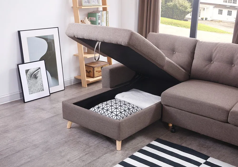 Pratique pour les petits comme grands espaces, le salon d’angle Larsoon dispose d’un coffre de rangement sous l’assise. Tirez simplement les coussins pour y découvrir un bel espace de rangement. Convertible, ce canapé scandinave vous offre une solution de couchage supplémentaire le temps d’un weekend ou d’une soirée.
