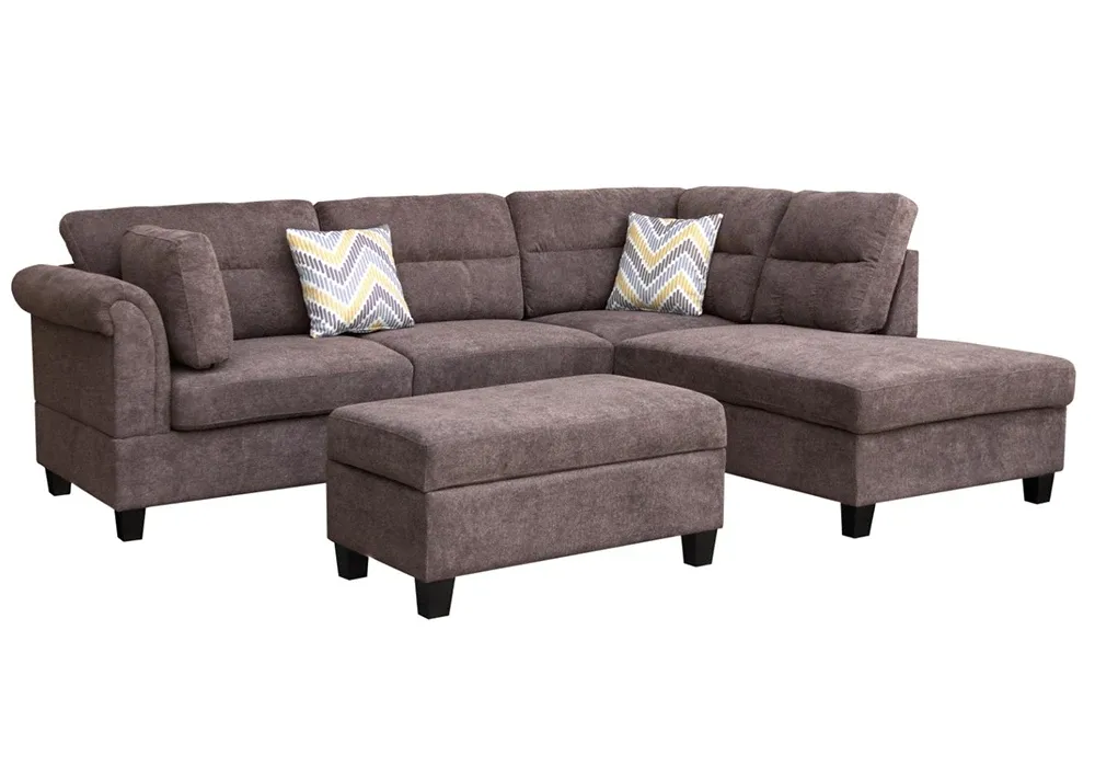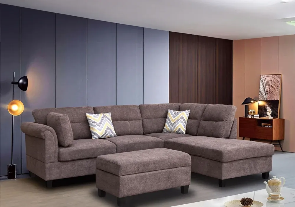 Découvrez le salon d’angle Valérie avec pouf coffre, l’alliance parfaite entre design contemporain et praticité. Ce canapé d’angle modulable s’adapte à votre intérieur grâce à son choix d’angle droit ou gauche.