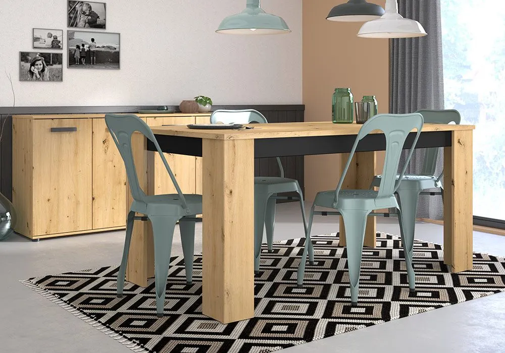 La table à manger Hudson apportera l’élégance et un aspect très moderne à votre séjour. Elle trouvera facilement sa place dans votre intérieur grâce à ses coloris chêne artisan et noir pour une ambiance chaleureuse.