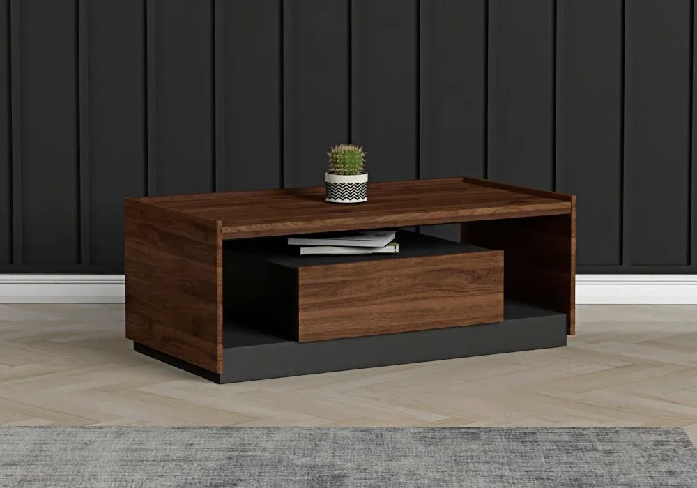 Son tiroir, discret et élégant, se fond harmonieusement dans la structure. Il peut accueillir vos télécommandes, magazines ou autres petits trésors.