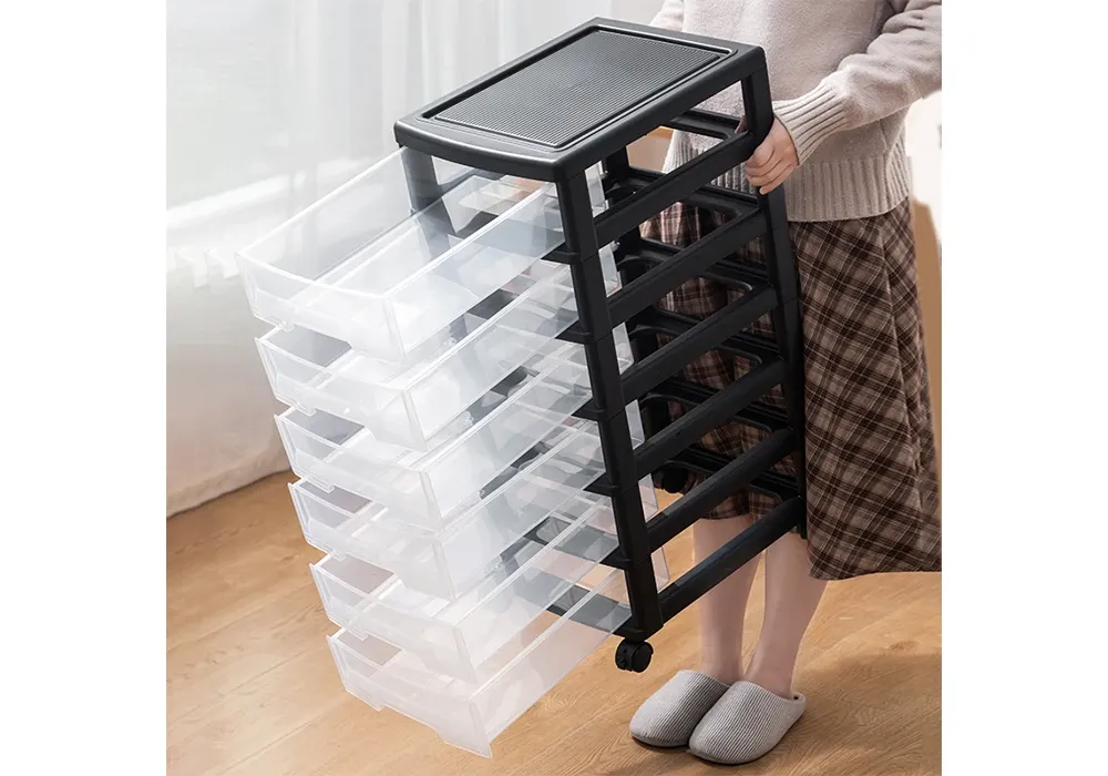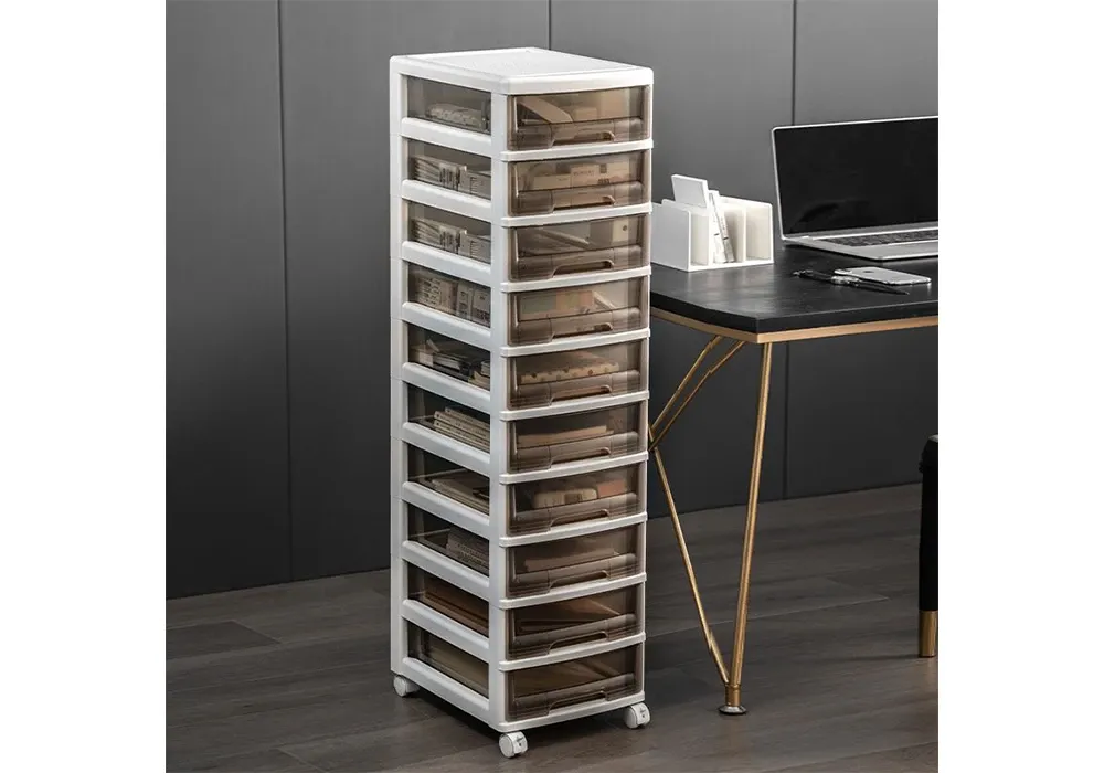 A la maison ou au bureau, ranger facilement vos affaires grâce à cette ce meuble tour de rangement plastique de 10 tiroirs. Avec 4 roulettes pour des déplacements plus faciles et des tiroirs translucides pour retrouver rapidement ce dont vous avez besoin.