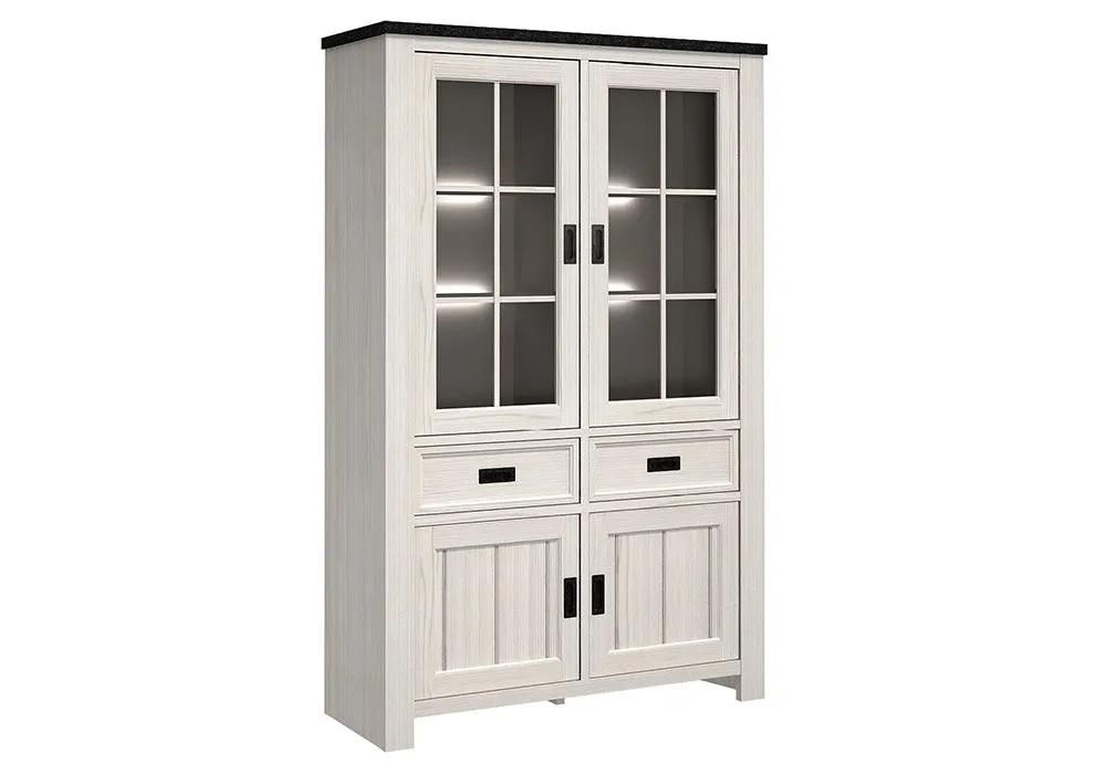 Chic, élégante et discrète, la vitrine 4 portes et 2 tiroirs de la collection Michigan sera un atout dans votre salon. Ses étagères vous permettrons d’y placer tous vos objets favoris et sa lumière vous permettra de les illuminés encore plus.